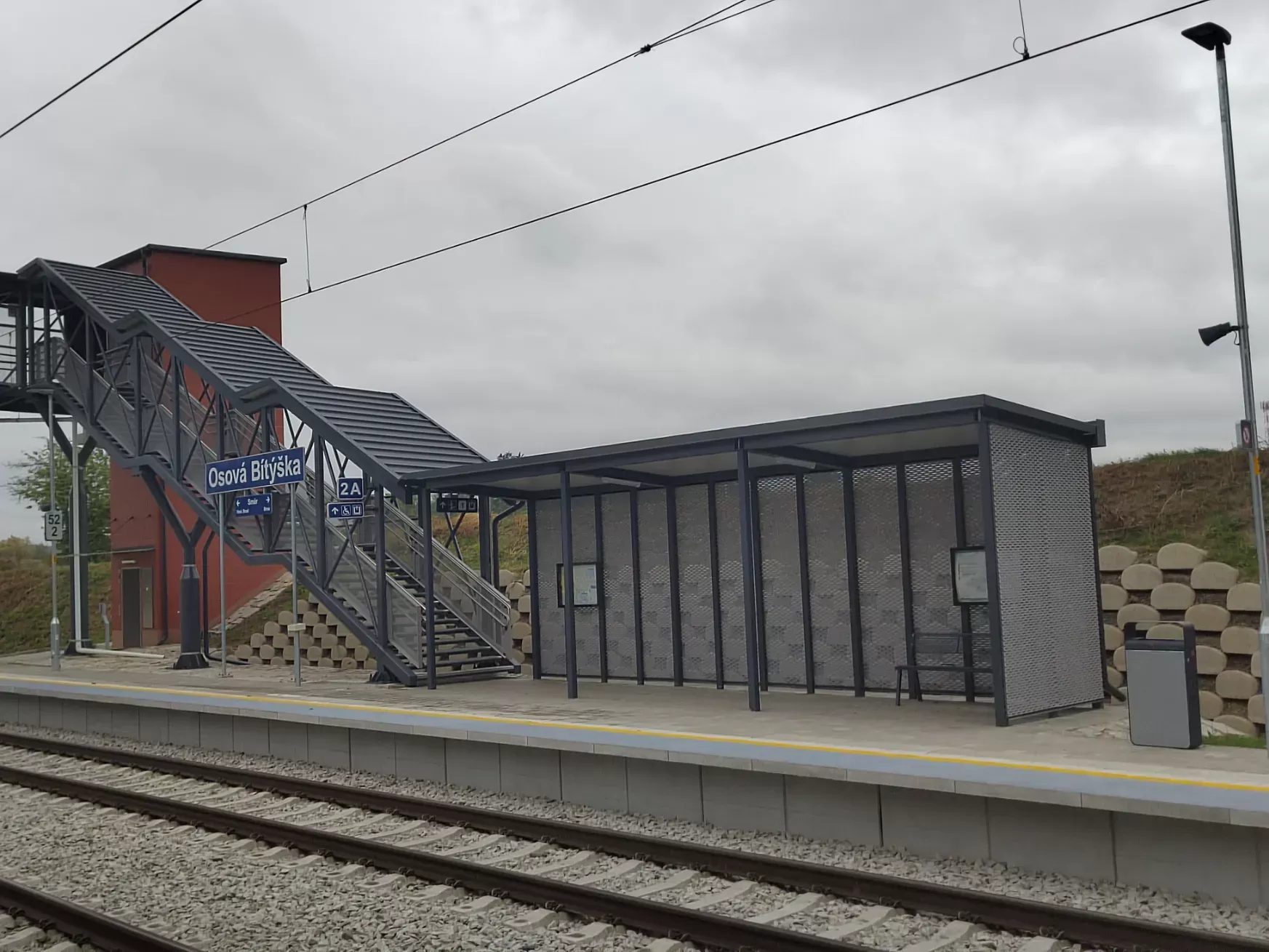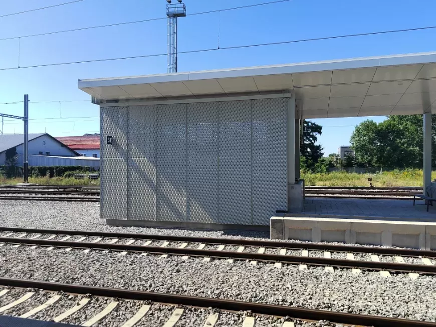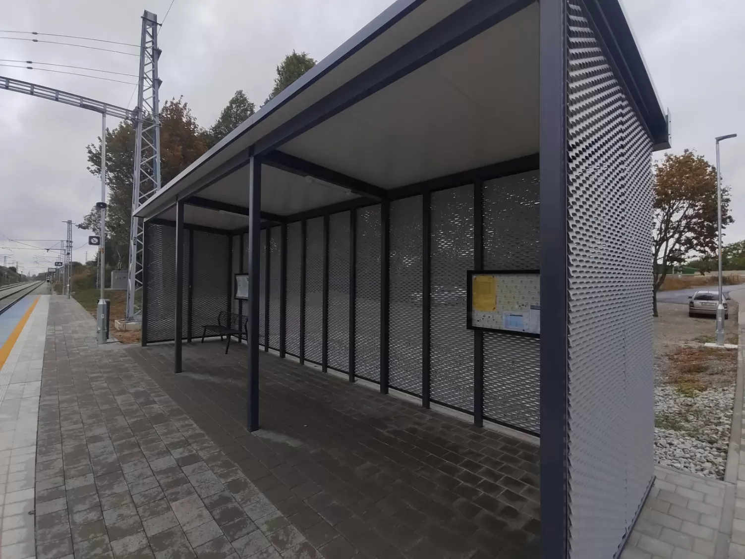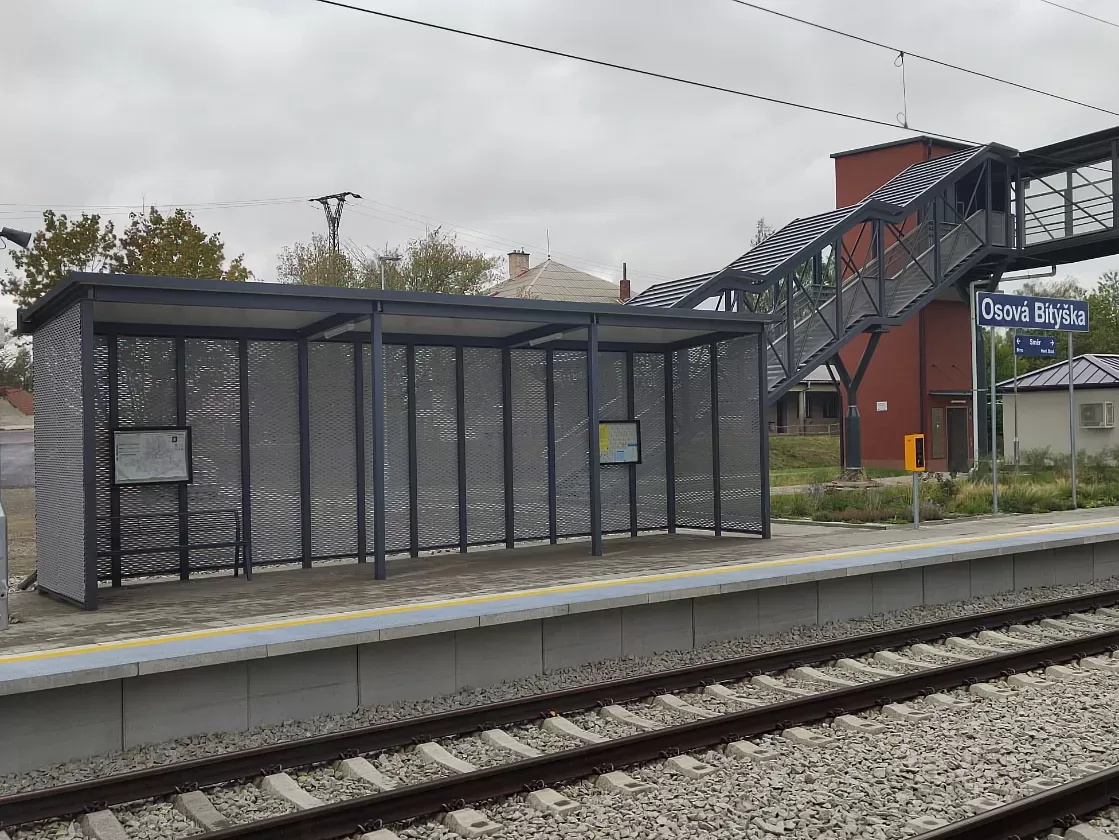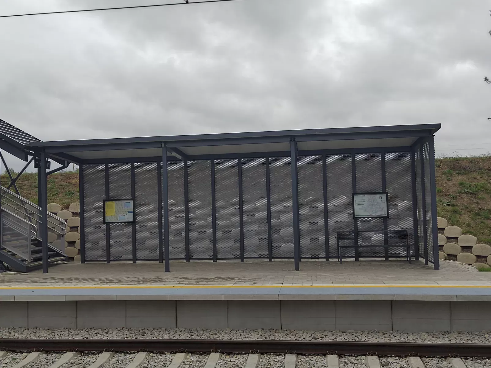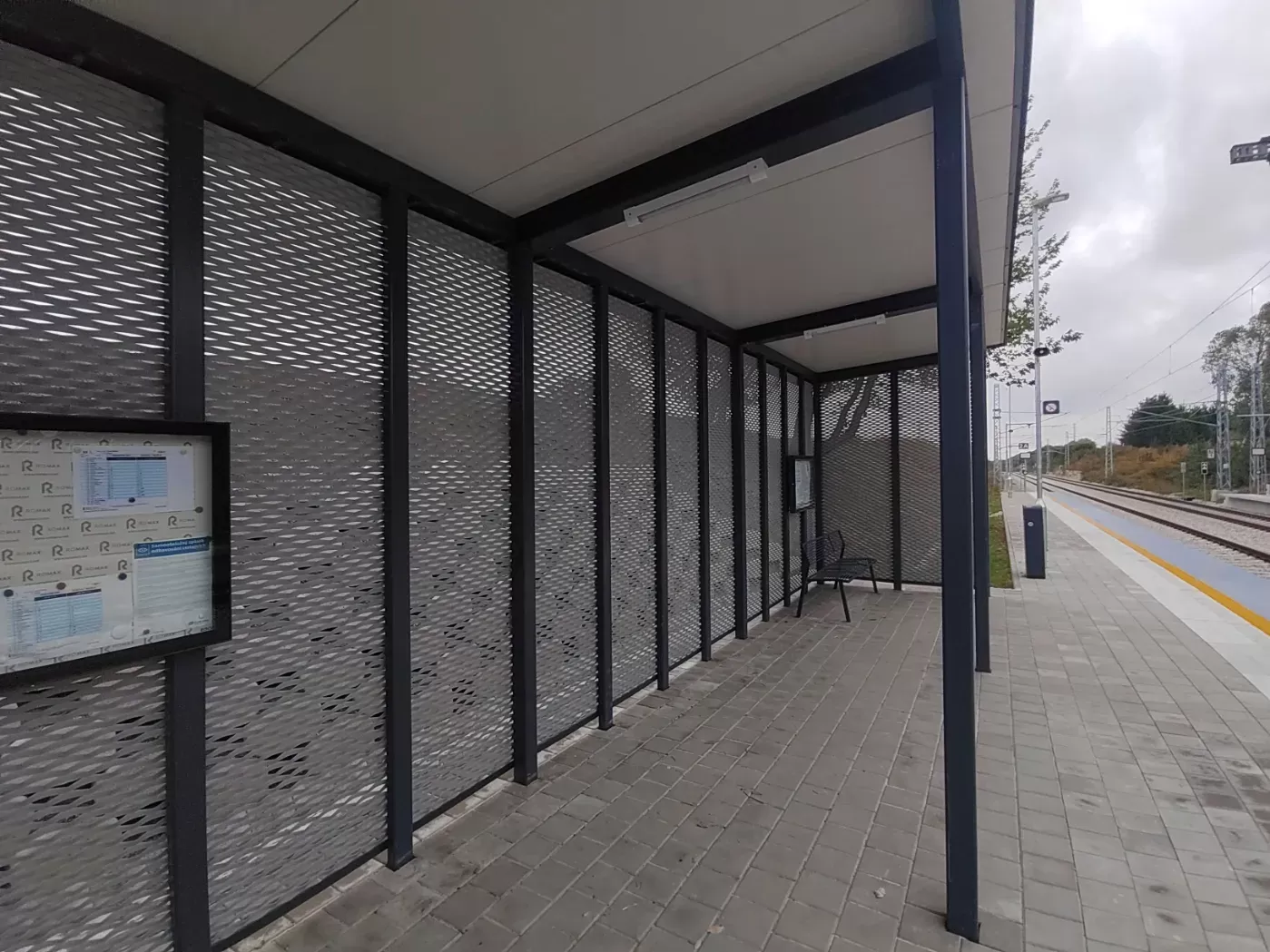 Anwendung: Verkleidung des Bahnhofs mit Streckmetall | Typ: Streckmetall 115 × 45 mm / Steg 20 mm | Material: Aluminium 1,5mm | Oberflächenbehandlung: Pulverbeschichtung RAL 7032 und RAL 9002