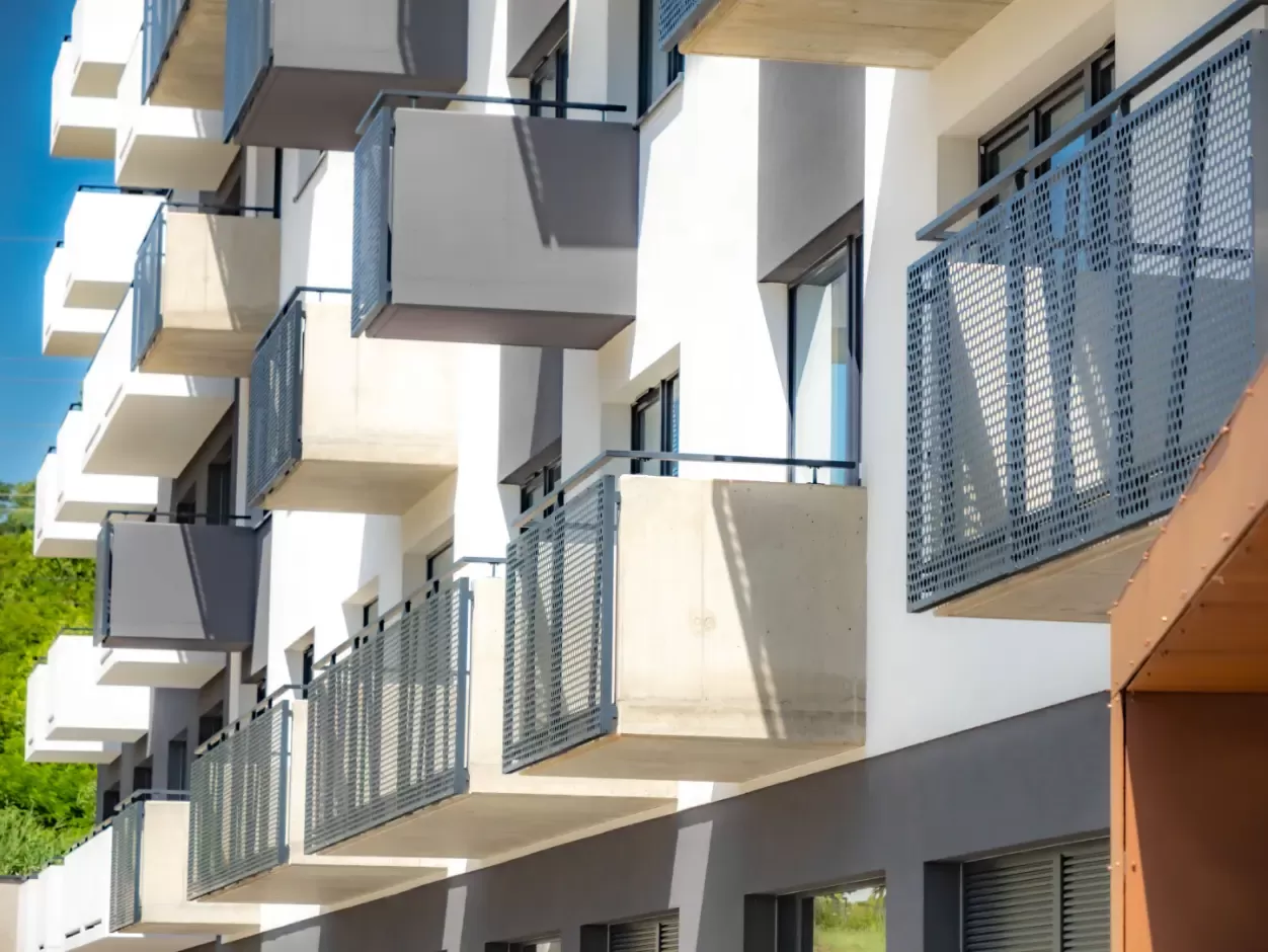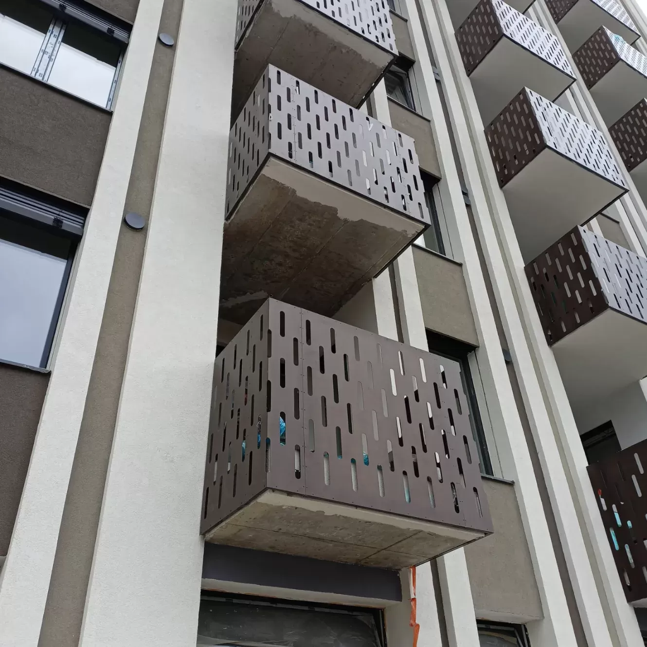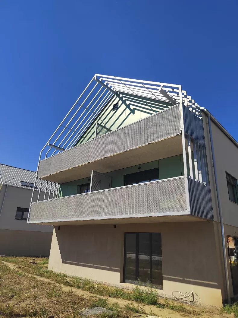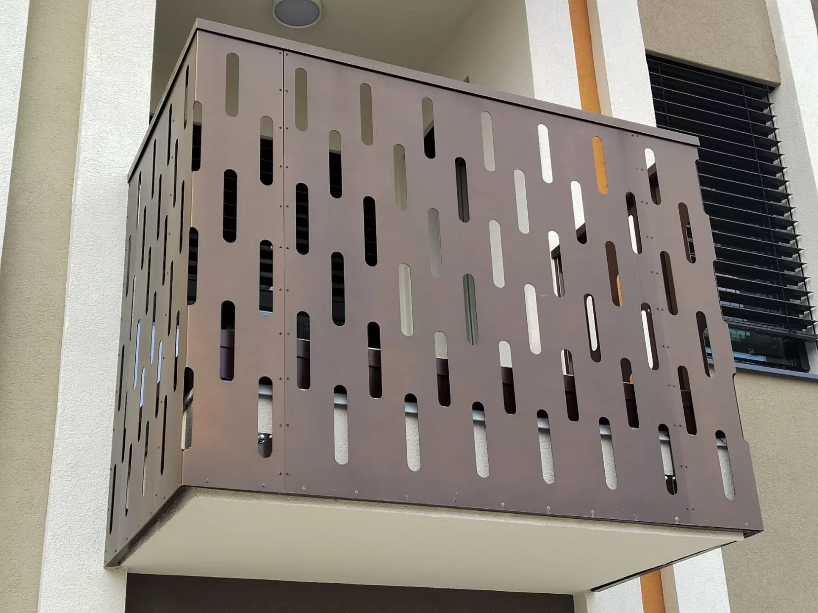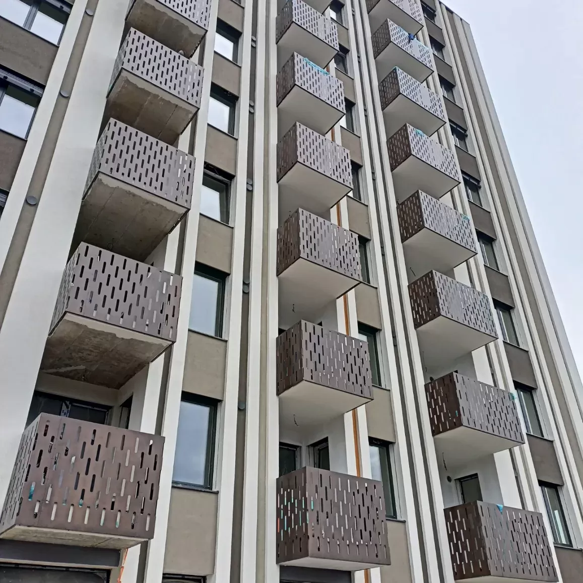 Anwendung: Balkonfüllungen eines Wohnhauses | Typ: Lochblech Rv 30-42 | Material: Verzinktes Blech 1,5 mm