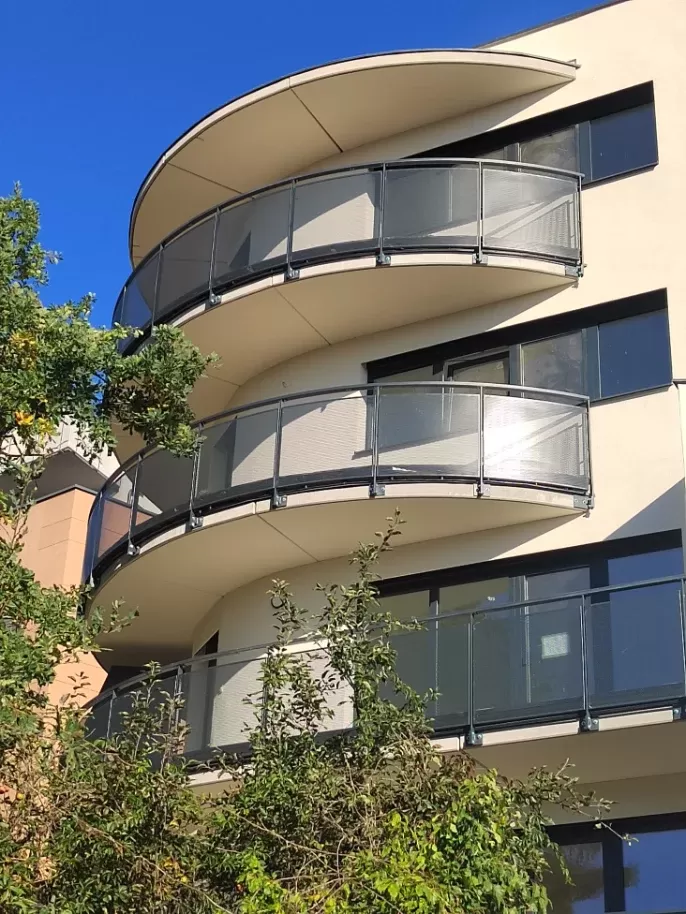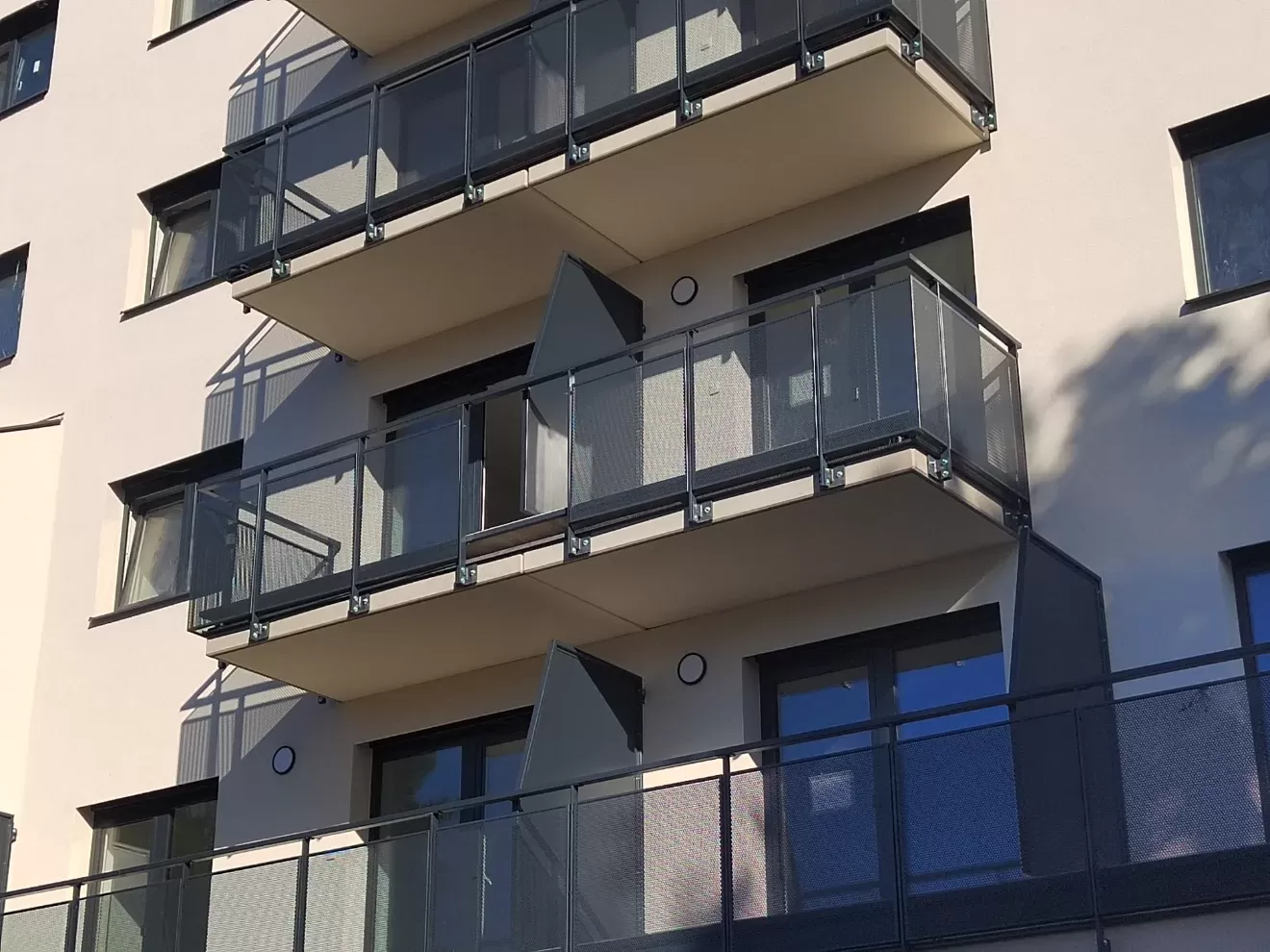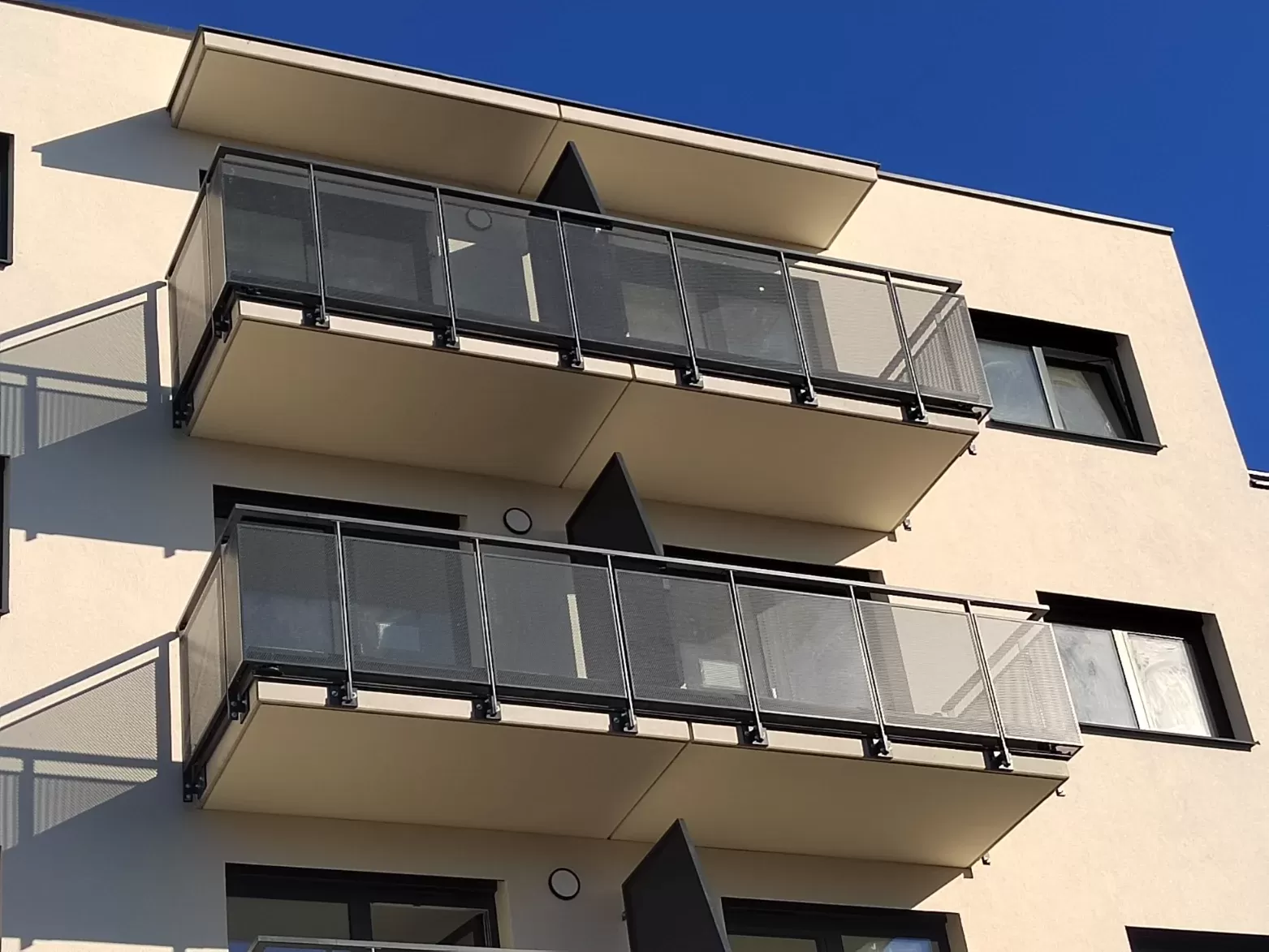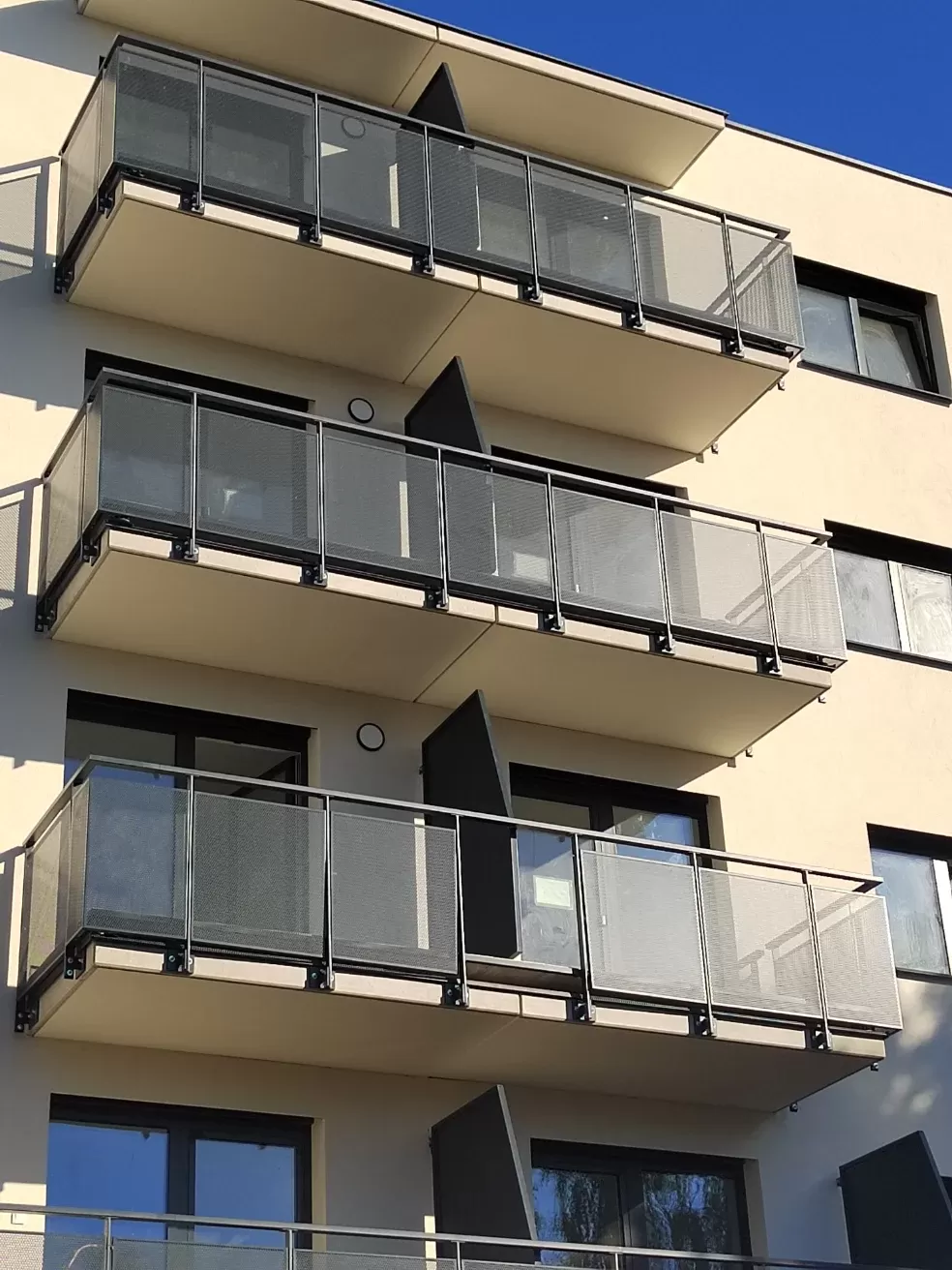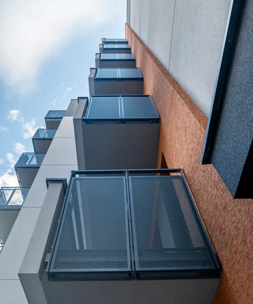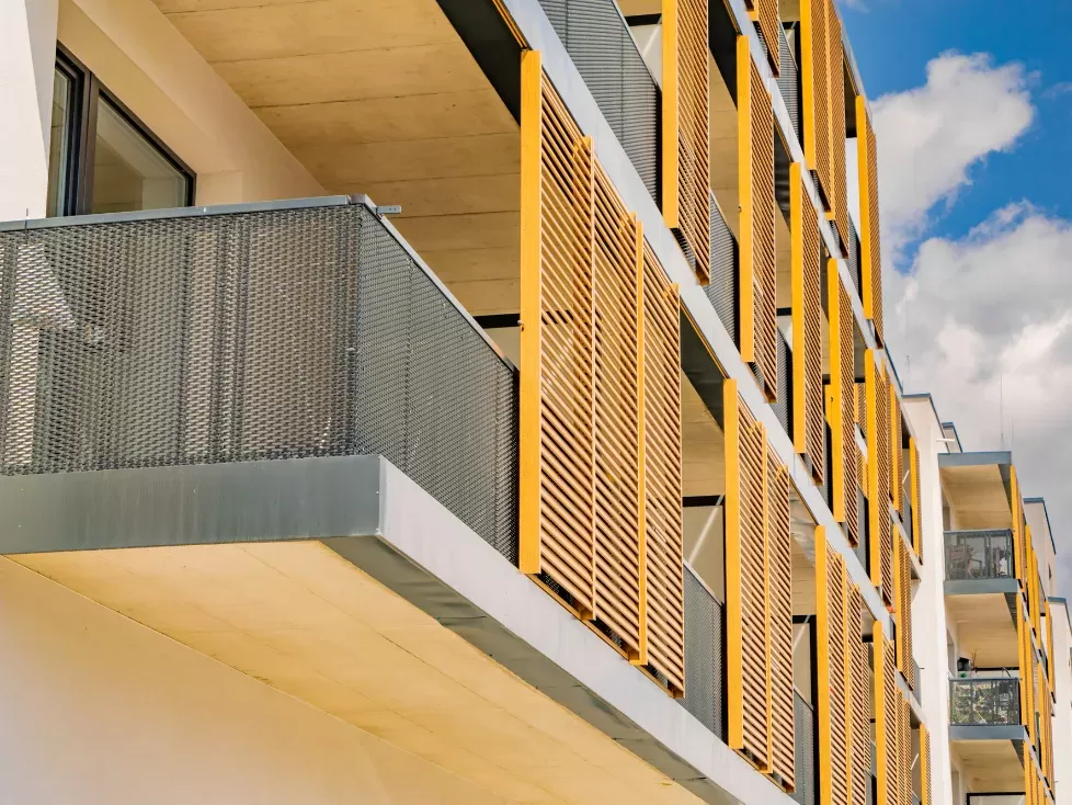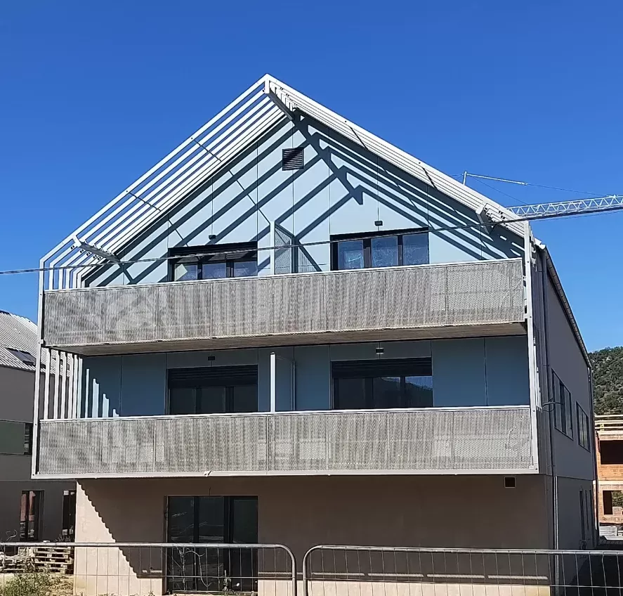 Anwendung: Balkonfüllungen eines Wohnhauses | Typ: Lochblech Rv 30-42 | Material: Verzinktes Blech 1,5 mm