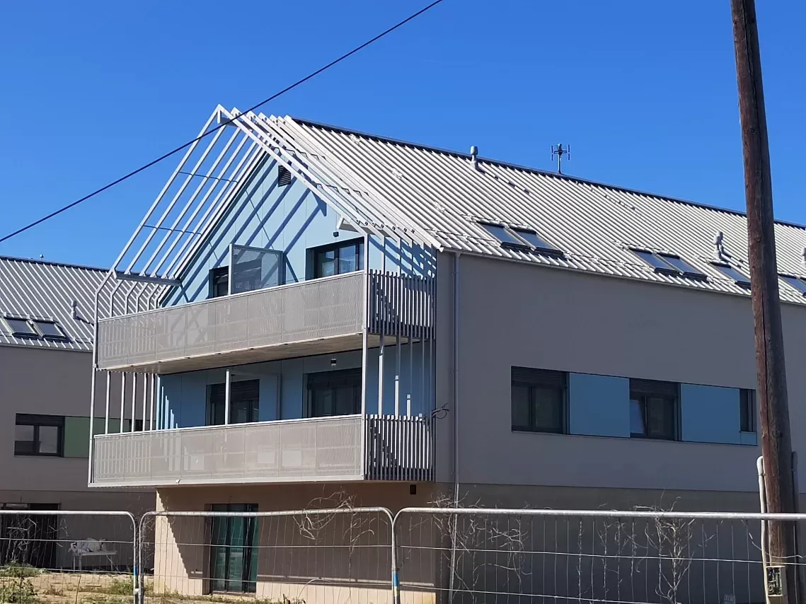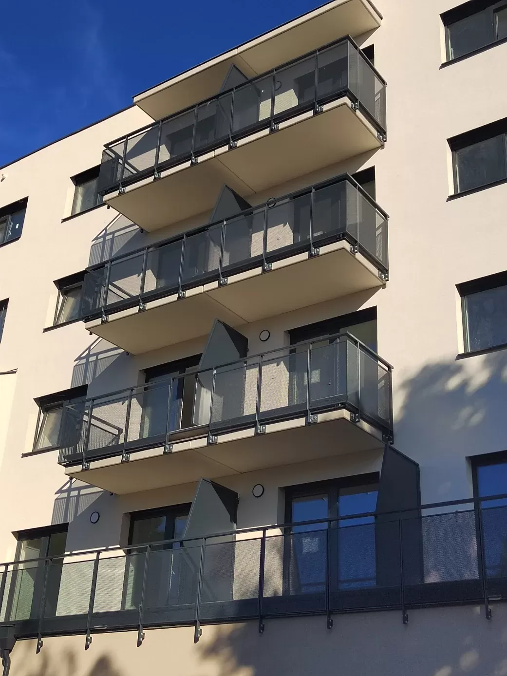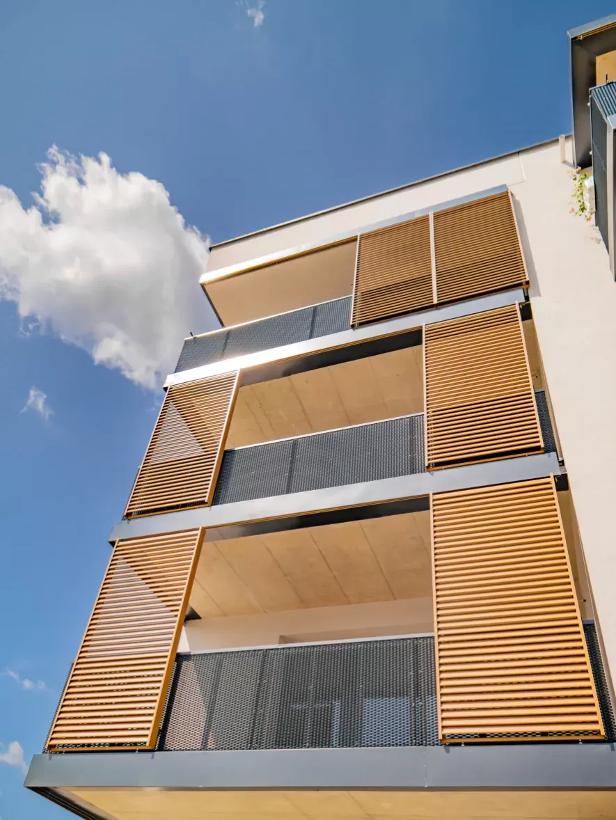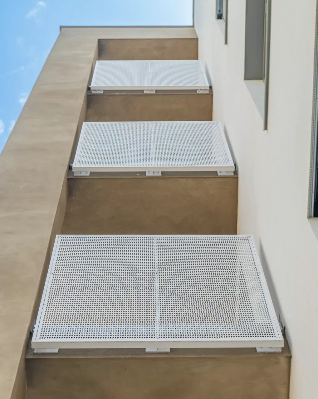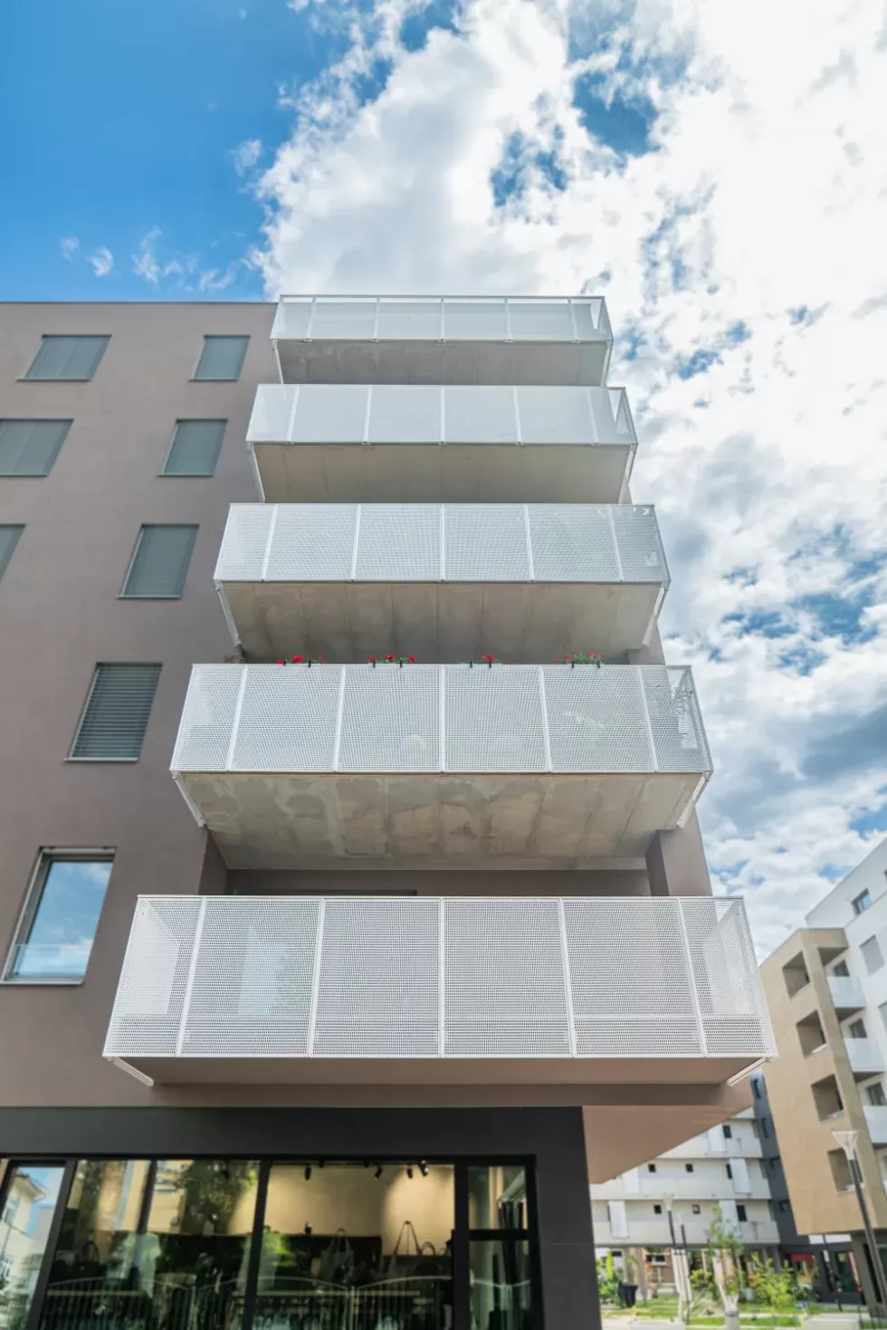 Anwendung: Balkonfüllungen eines Wohnhauses | Typ: Lochblech Rv 30-42 | Material: Verzinktes Blech 1,5 mm