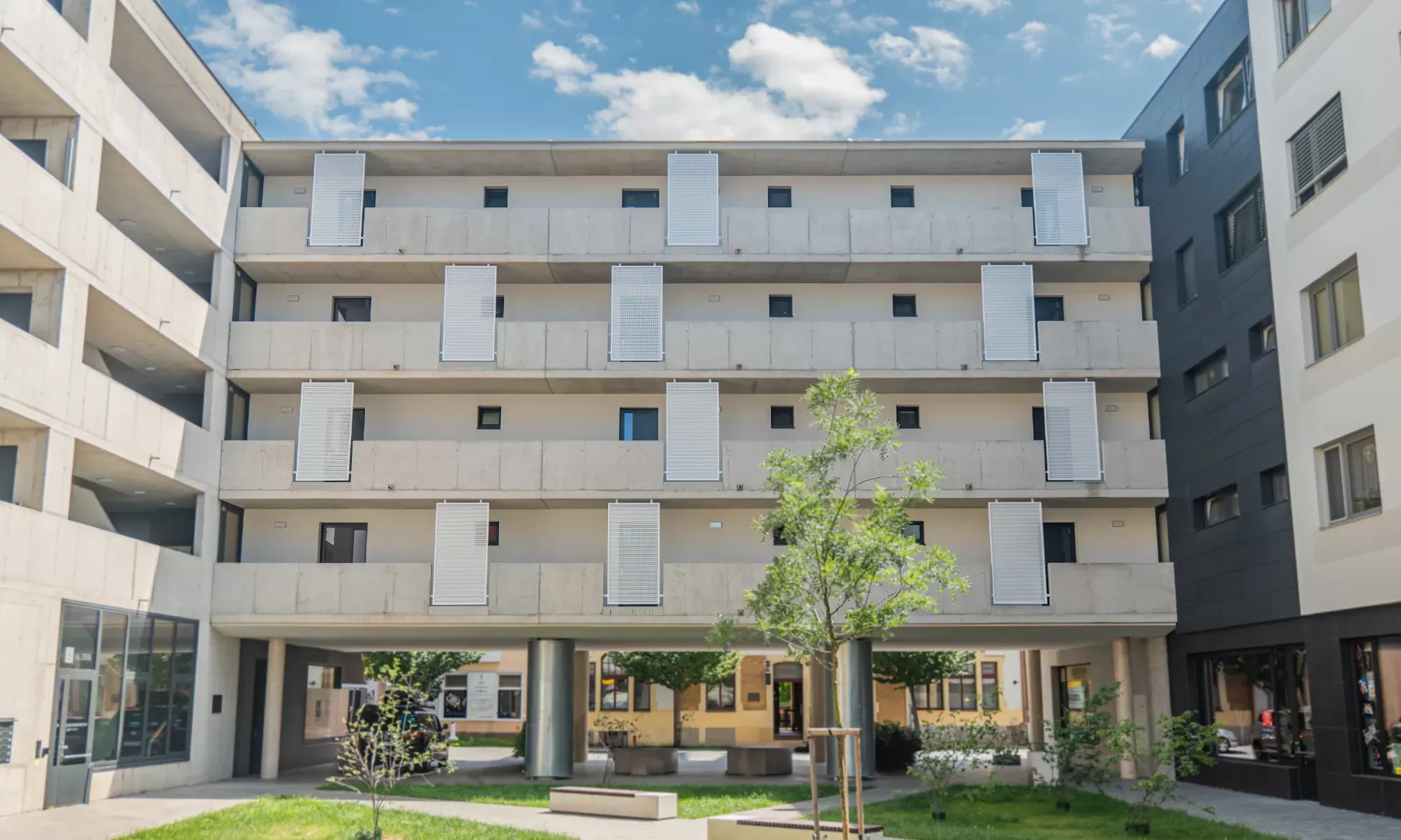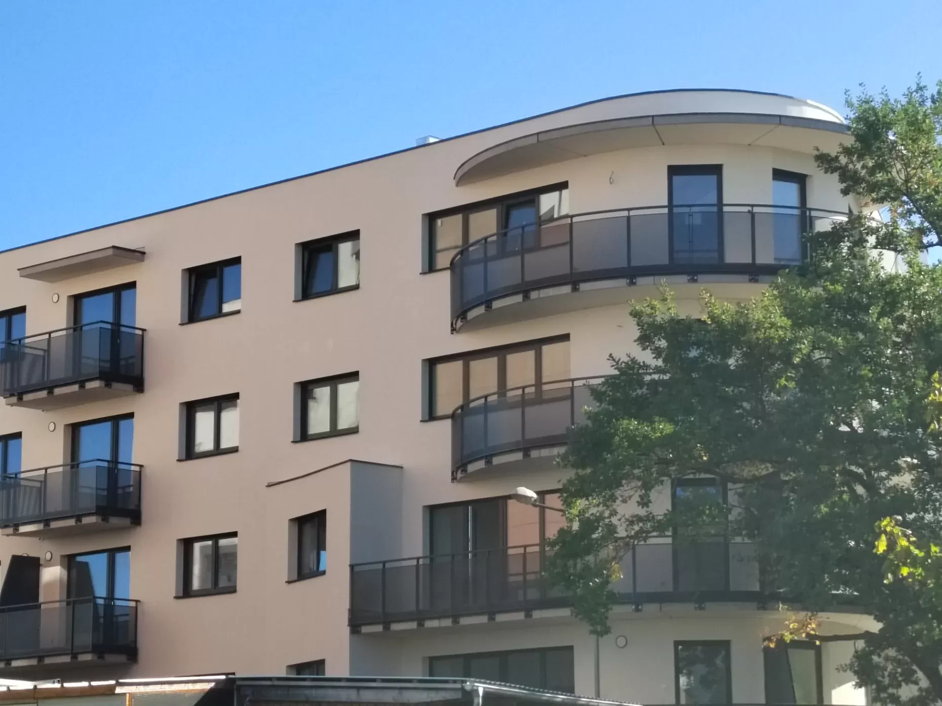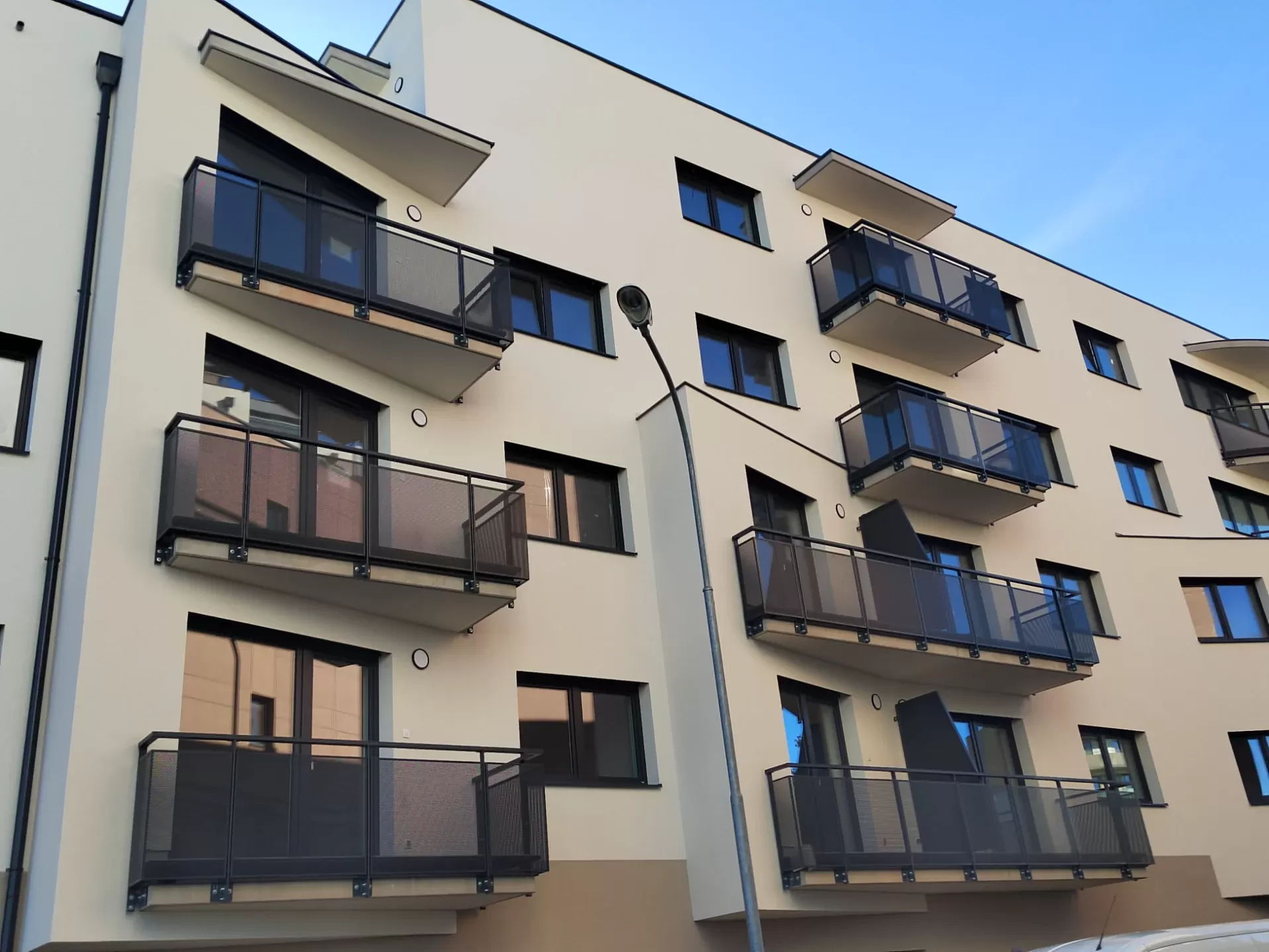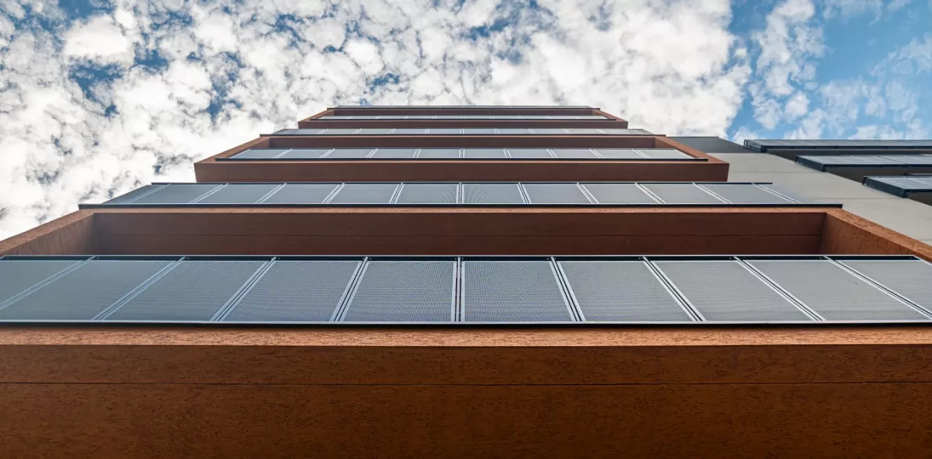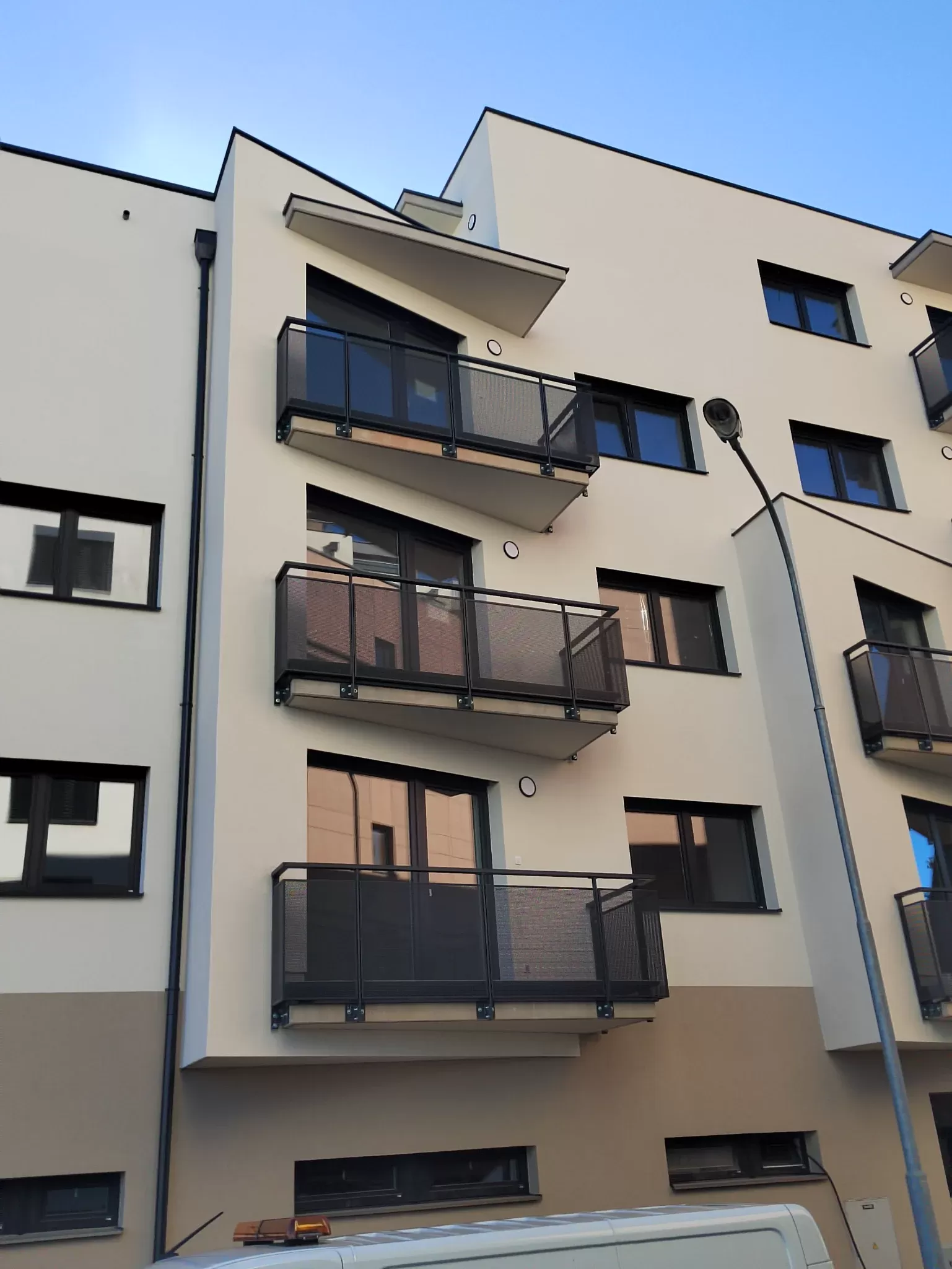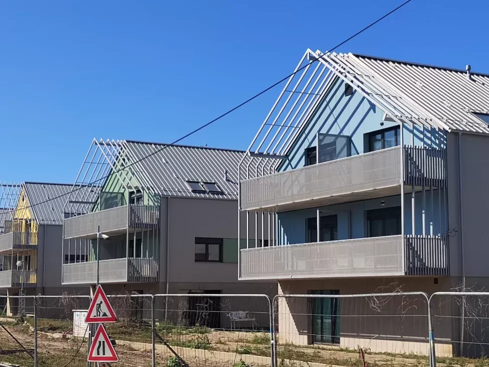 Anwendung: Balkonfüllungen eines Wohnhauses | Typ: Lochblech Rv 30-42 | Material: Verzinktes Blech 1,5 mm