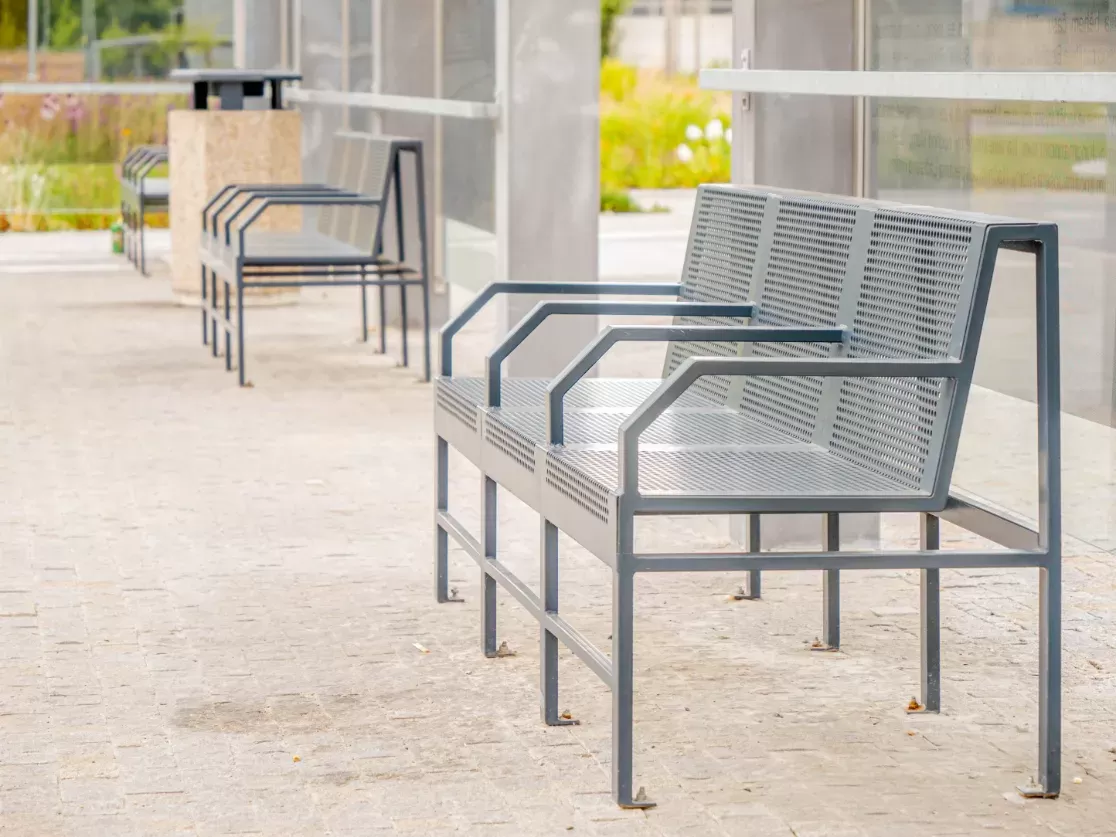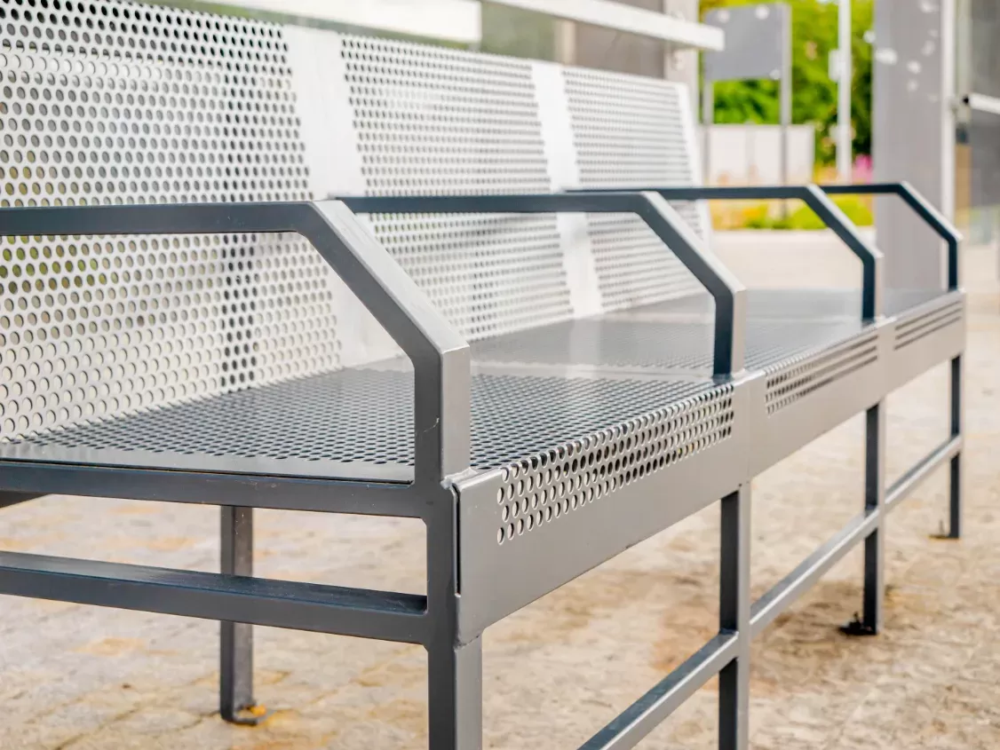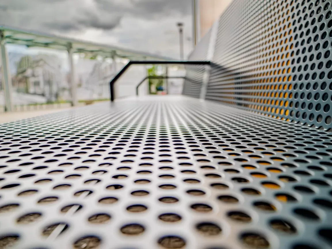 Anwendung: Mobiliar | Typ: Lochblech Rv 10-15 | Material: Stahl 2,0mm | Oberflächenbehandlung: Komaxit für Außenbereiche