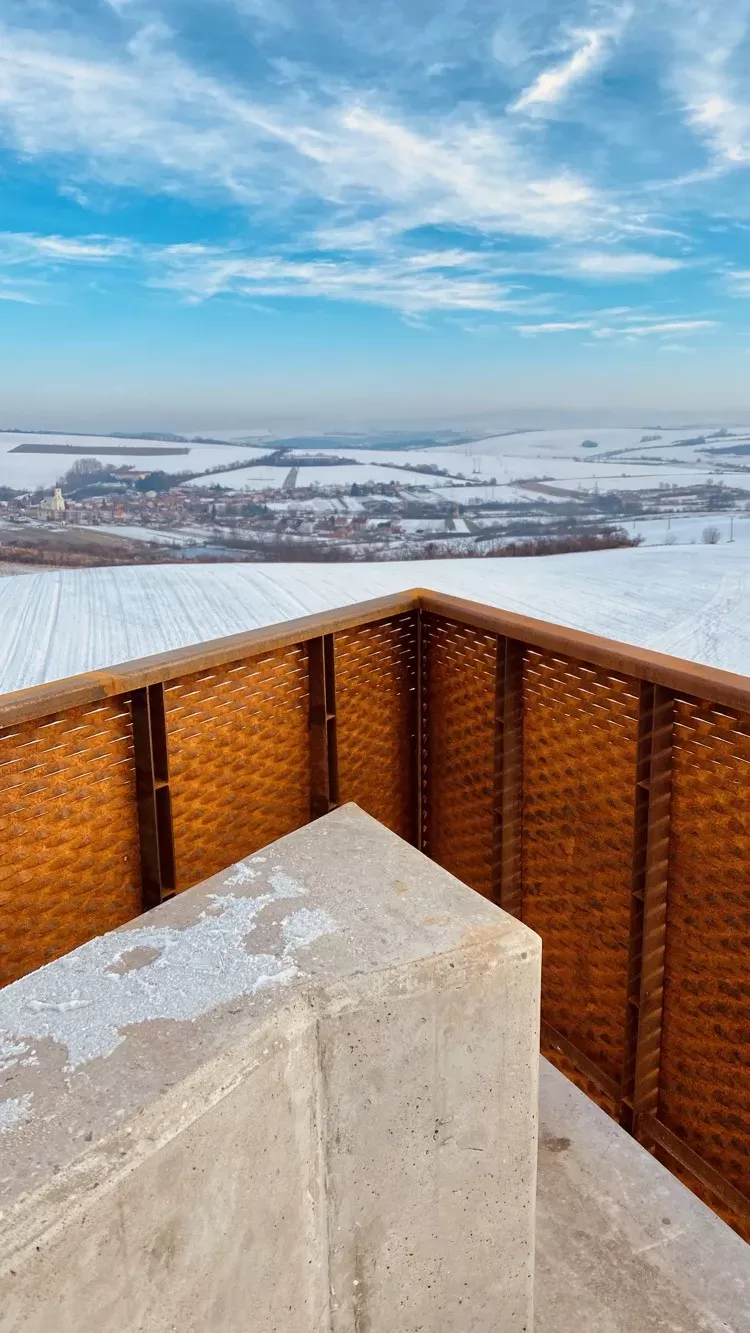 Anwendung: Geländerfüllung aus Streckmetall | Typ: Streckmetall 110 × 52 mm / Steg 24 mm | Material: Cortenstahl 2mm | Generalunternehmer für Bau und Fotos: RENOVA stavební a obchodní společnost s r.o.
