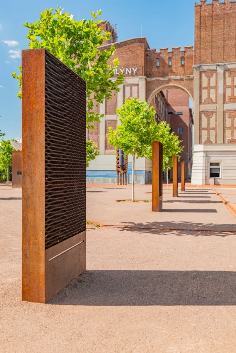 Anwendung: Design-Infotafel | Typ: Design-Ausbrennung gemäß Zeichnung | Material: Cortenstahl | Urheber: Studio Dezainers | Foto: Jan Zainer